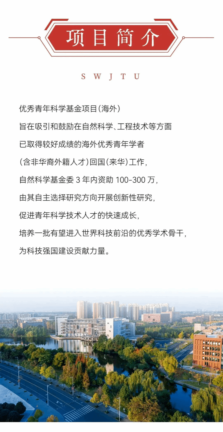 是教育部直属全国重点大学,国家首批“双一流”“211工程”“特色985 工程”“2011协同创新计划”重点建设并设有研究生院的研究型大学,坐落于中国历史文化名城、国家中心城市、“成渝地区双城经济圈”核心城市一一成都,现有九里、犀浦、峨眉、成都东部(国际)校区四个校区,共占地 5000 余亩。学校创建于1896 年,以“唐山交大”“唐院”之名享誉中外,素有“东方康奈尔”之美誉,毛泽东为学校题写校名。凡一百二十七年,学校矢志于卓越工程教育,以工见长、理工结合、文理渗透,引领中国轨道交通事业,打造“中国高铁”靓丽国家名片,创造了百余项“中国第一”乃至“世界第一”。