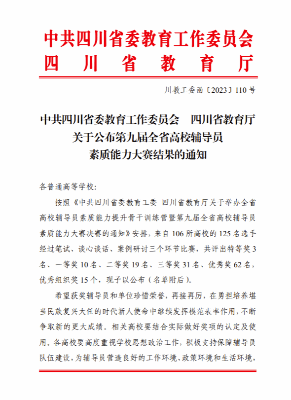近日,在刚刚结束的四川省高校辅导员素质能力提升骨干训练营暨第九届全省高校辅导员素质能力大赛决赛中,萝莉岛
