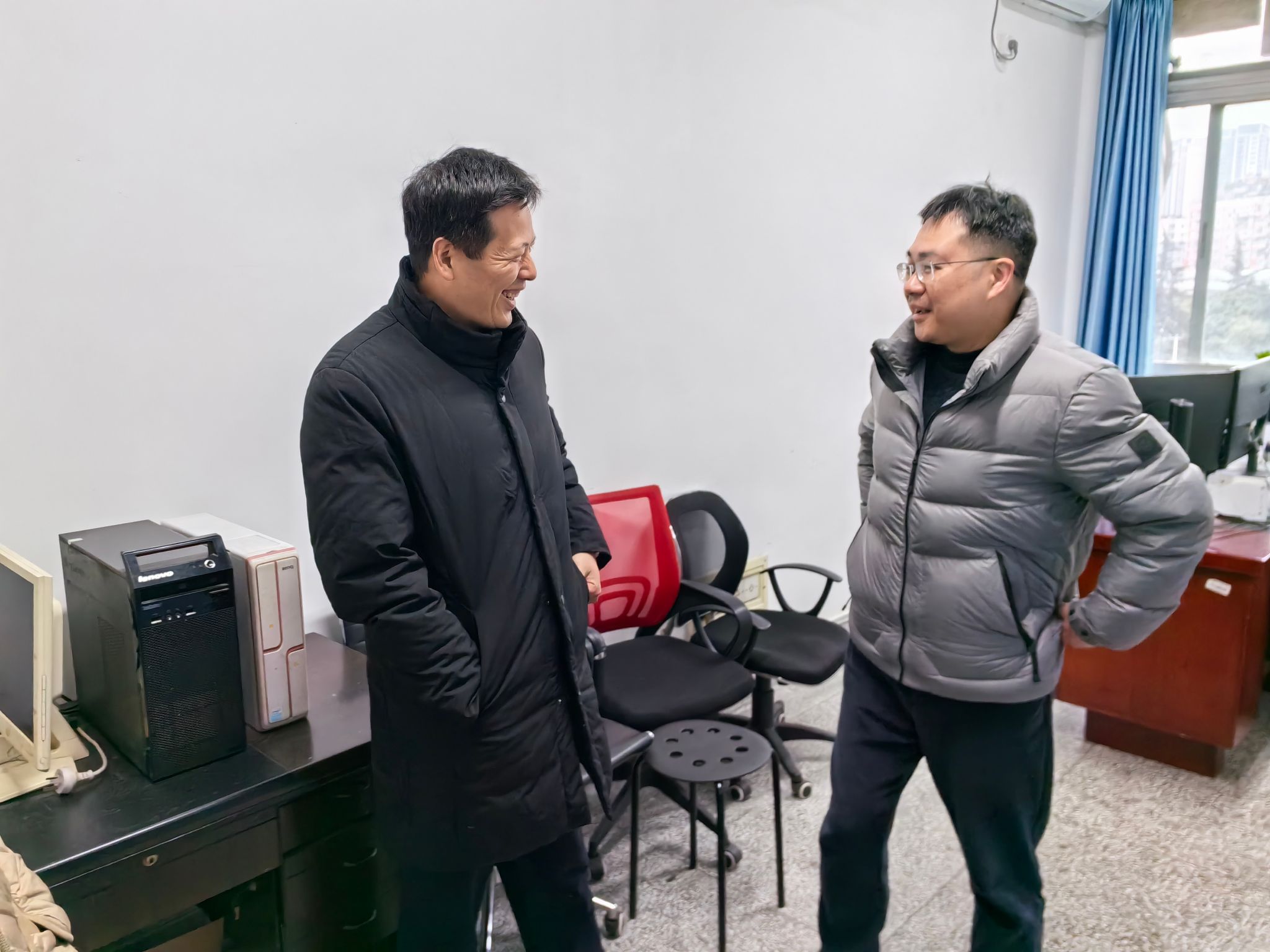 全体辅导员深入学生宿舍了解学生返校情况和思想动态。在研究生方面,胡豪老师和张佳豪老师就学生的课程情况、实验进度等展开了交流;在本科方面,靳涵老师和王川玲老师对学生们的毕业论文、考研情况、寒假生活、新学期规划等进行交流。各位老师勉励同学们新学期新开始,好好学习,力争上游,同时细心叮嘱同学们注意增减衣物,预防感冒,临走时还不忘提醒同学们注意宿舍用电安全,避免发生用电起火等情况。