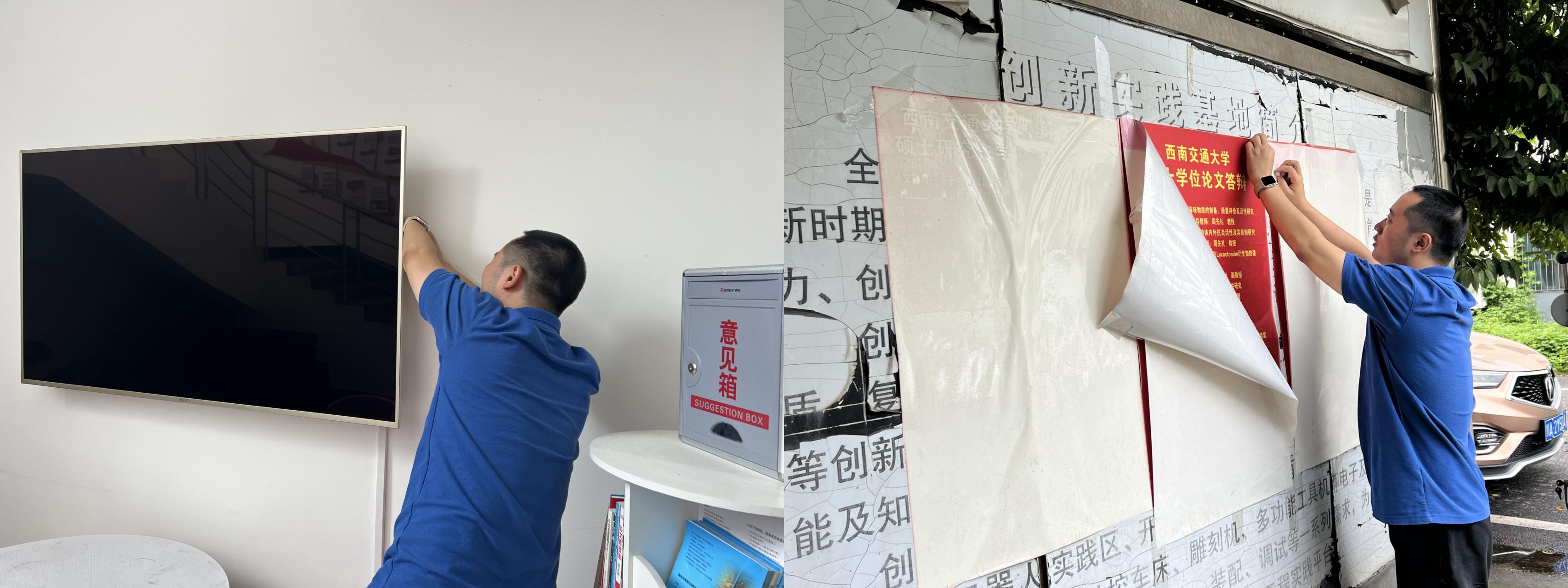 开展宣传品自查工作。主动检查了学院所属LED电子显示屏,切断电源及网络,收回遥控器由专人统一管理。自查了学院办公区、实验室区、学生园区的宣传公示栏,清除了各类过期海报和通知,积极营造文明高雅、和谐整洁的校园环境。