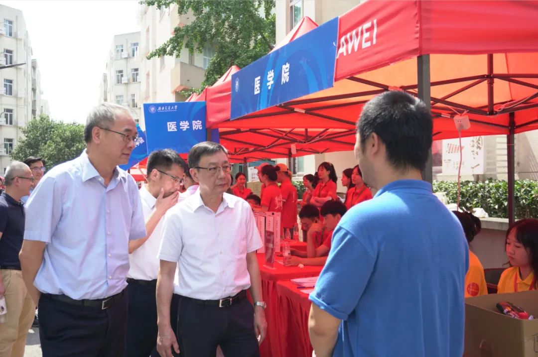 迎新点看望了参与迎新工作的师生。学院党委副书记于楠向校领导汇报了学院今年招生情况和迎新工作整体部署,着重汇报了前期对涉及学籍划转的新生所做的工作。校领导对学院相关工作予以肯定,向参与迎新相关工作的师生表示感谢,并嘱咐学院进一步支持学生工作,做好学生工作。随后,校领导为今年萝莉岛