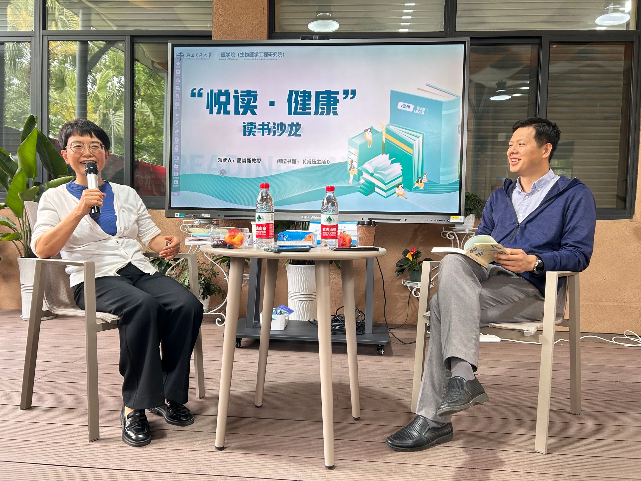 本次活动导读员分别是学院党委书记李锦红和教授屈树新。活动中李锦红书记分享了书中提到的减压方式,具体来说,他强调了以下几点: