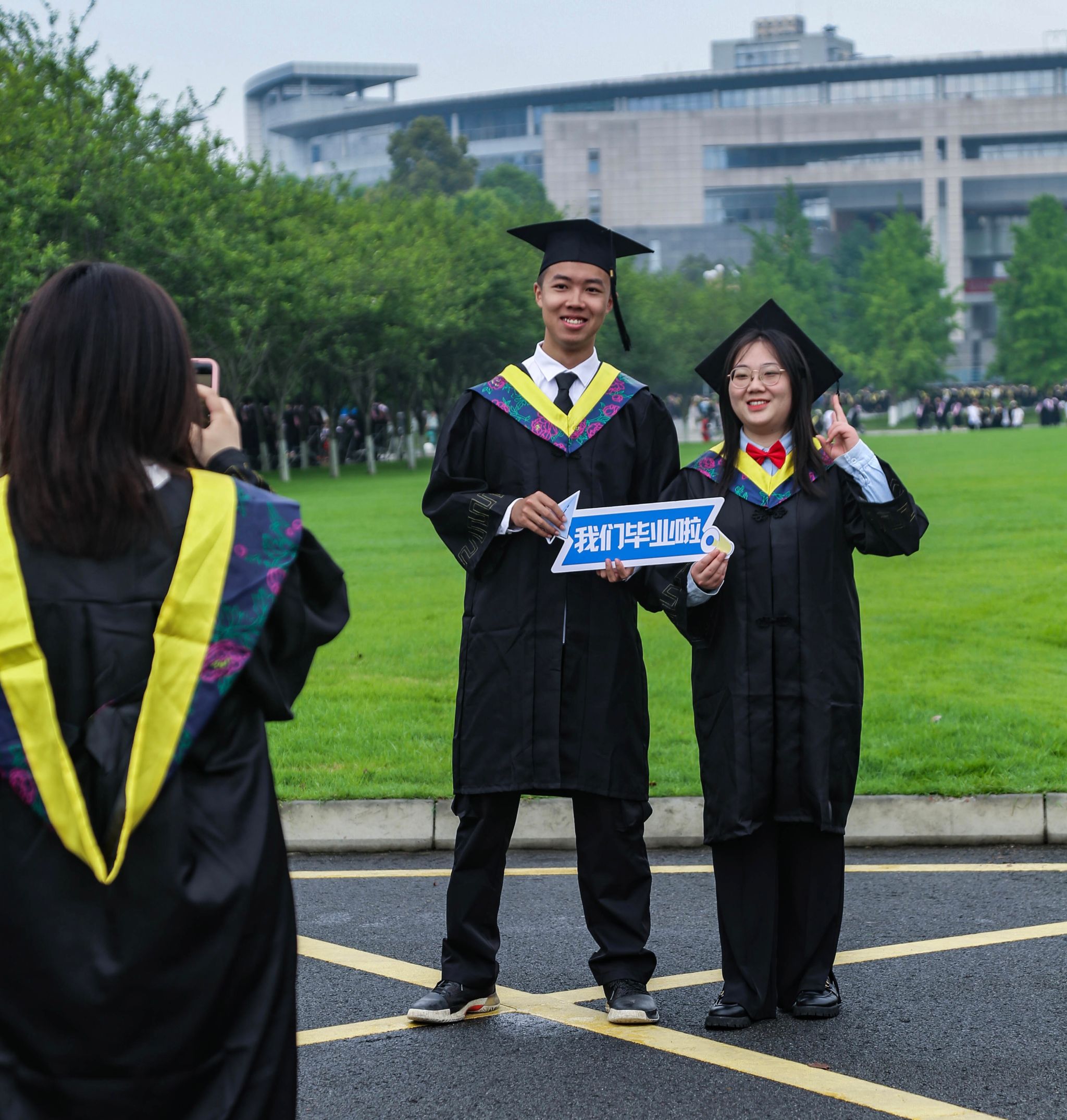 在等待拍摄间隙,毕业生们纷纷拿出手机,记录下这一刻的点点滴滴。他们相互拥抱、合影留念,用镜头记录下这份深厚的同窗情谊。在这短暂的相聚中,他们畅谈着过去的学习经历,分享着彼此的成长故事,也展望着未来的美好前景。