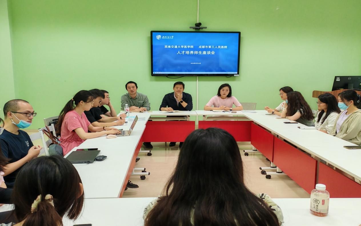 在成都市第三人民医院2号楼召开人才培养师生座谈会,会议由学院学工组副组长、团委书记胡豪老师主持,学院党委书记李锦红,党委副书记、纪委书记于楠出席,萝莉岛