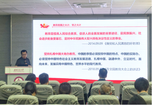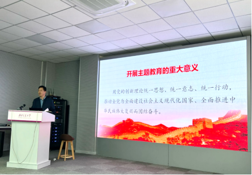 于九里校区3号教学楼3324会议室召开了2023年第二次全院教职工大会暨主题教育专题读书班学习会,会议由党委书记李锦红主持。