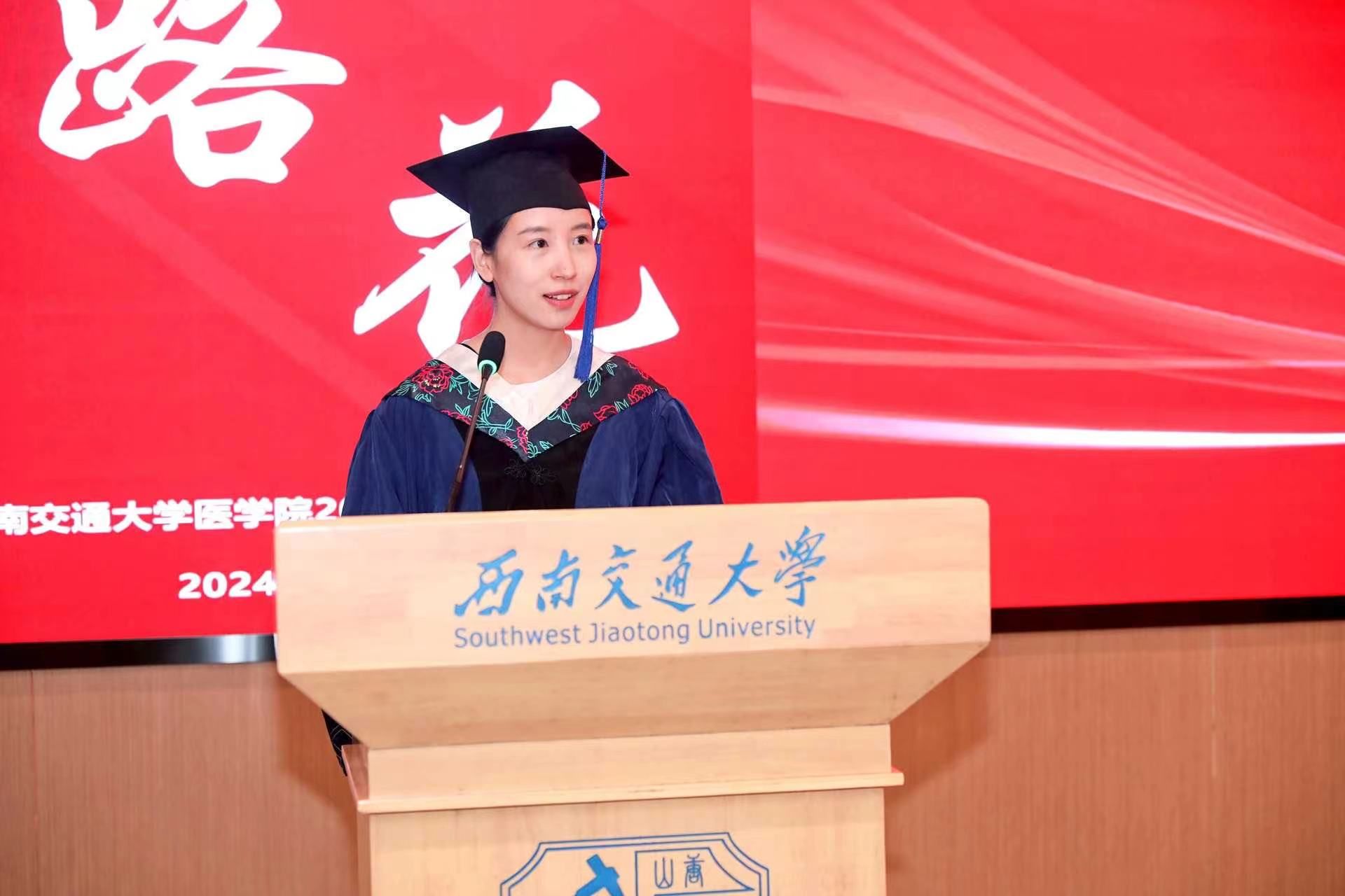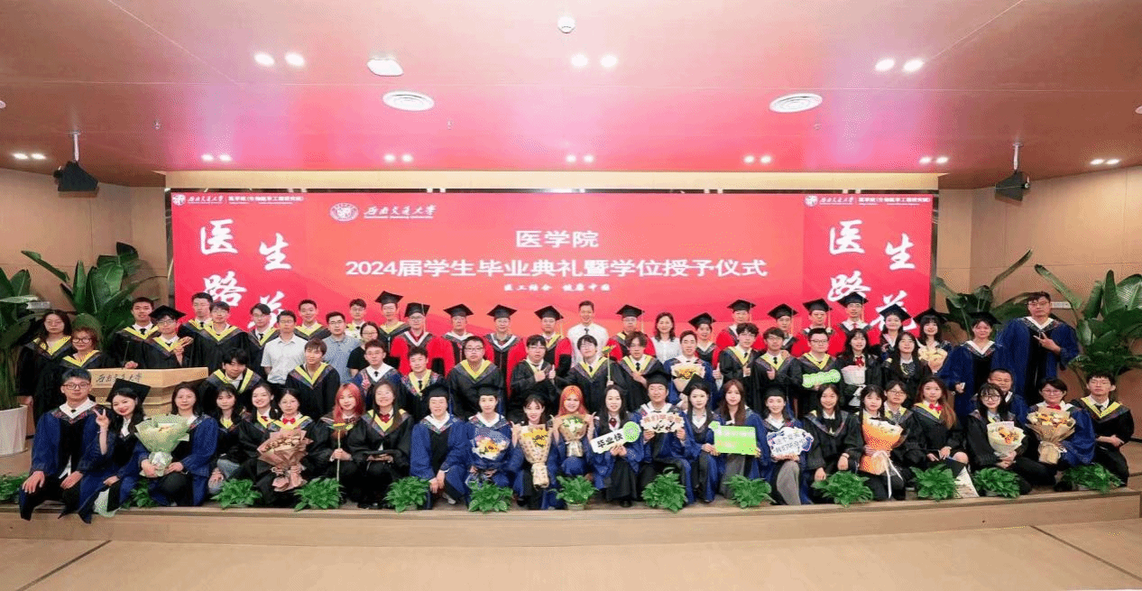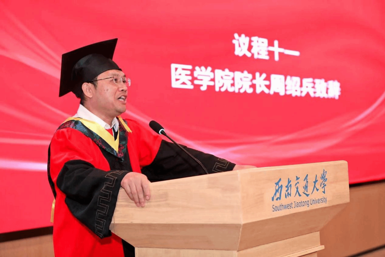 在颁奖环节结束后,冷永祥副院长、李暄副院长、成都市第三人民医院谢江副院长代表学院和医院向毕业生代表赠送了毕业礼物。这些礼物承载着学院对毕业生们深深的祝福和期望。它们象征着毕业生们即将踏上新的人生旅程,也寓意着学院将永远是他们坚强的后盾。