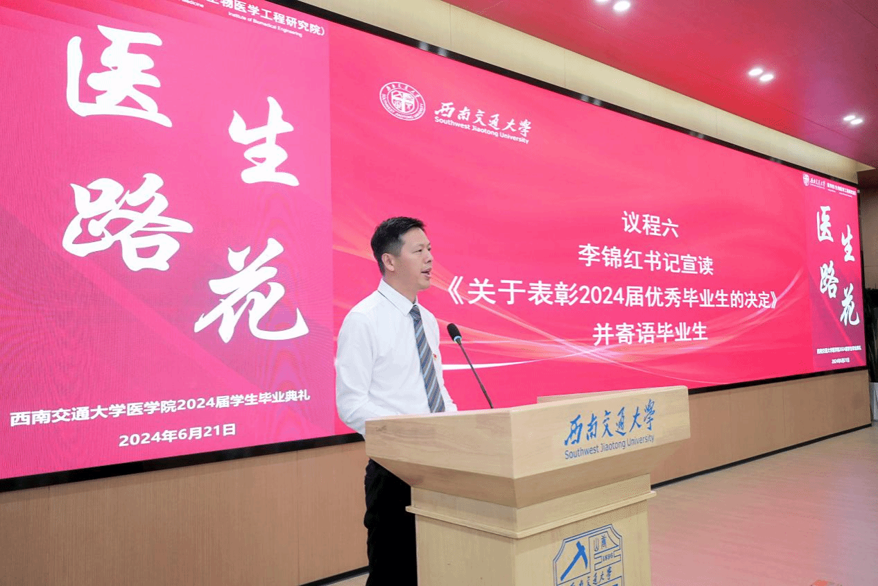 优秀毕业生”荣誉称号。这些优秀毕业生在学业、科研、社会实践等方面都取得了卓越的成绩,他们的事迹激励着在场的每一位同学。李书记指出,“希望这些毕业生们在今后的人生道路上,将自身所学更好地融入中国式现代化的建设当中,既要仰望星空、也要脚踏实地,为引领医学科技创新,建设健康幸福中国做出更大的贡献。”同时,号召学院全体在校学生向优秀毕业生学习,为建设具有医工结合特色的研究型萝莉岛