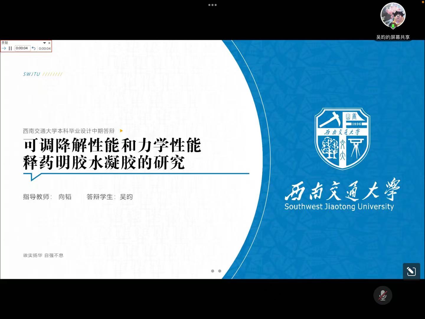 结合学院实际情况,本次中期答辩采取线上形式。其间,参会老师重点检查毕业设计(论文)开展情况、任务书执行进度、与指导教师沟通及指导纪要填写情况、存在的问题及拟解决问题的方案和措施等。在答辩过程中,同学们一一展示了自己的科研成果,包括研究背景、研究方法、研究结果等。老师们对每位同学的答辩都提出了精准的问题,并就答辩中出现的问题给出了自己的观点和建议。