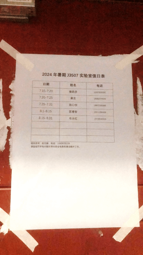 组织开展了2023-2024第二学期暑假前实验室安全大检查,学院实验主管郑晓彤带领实验室老师进行了本次检查。在本次检查中,检查组着重排查实验室安全隐患及暑假中各实验室值班表安排张贴情况。