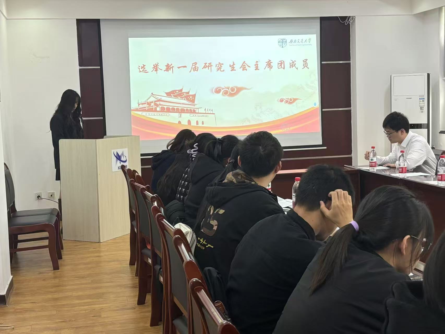 研究生会指导老师韩鹏飞以及第四届研究生代表大会全体代表参加会议。