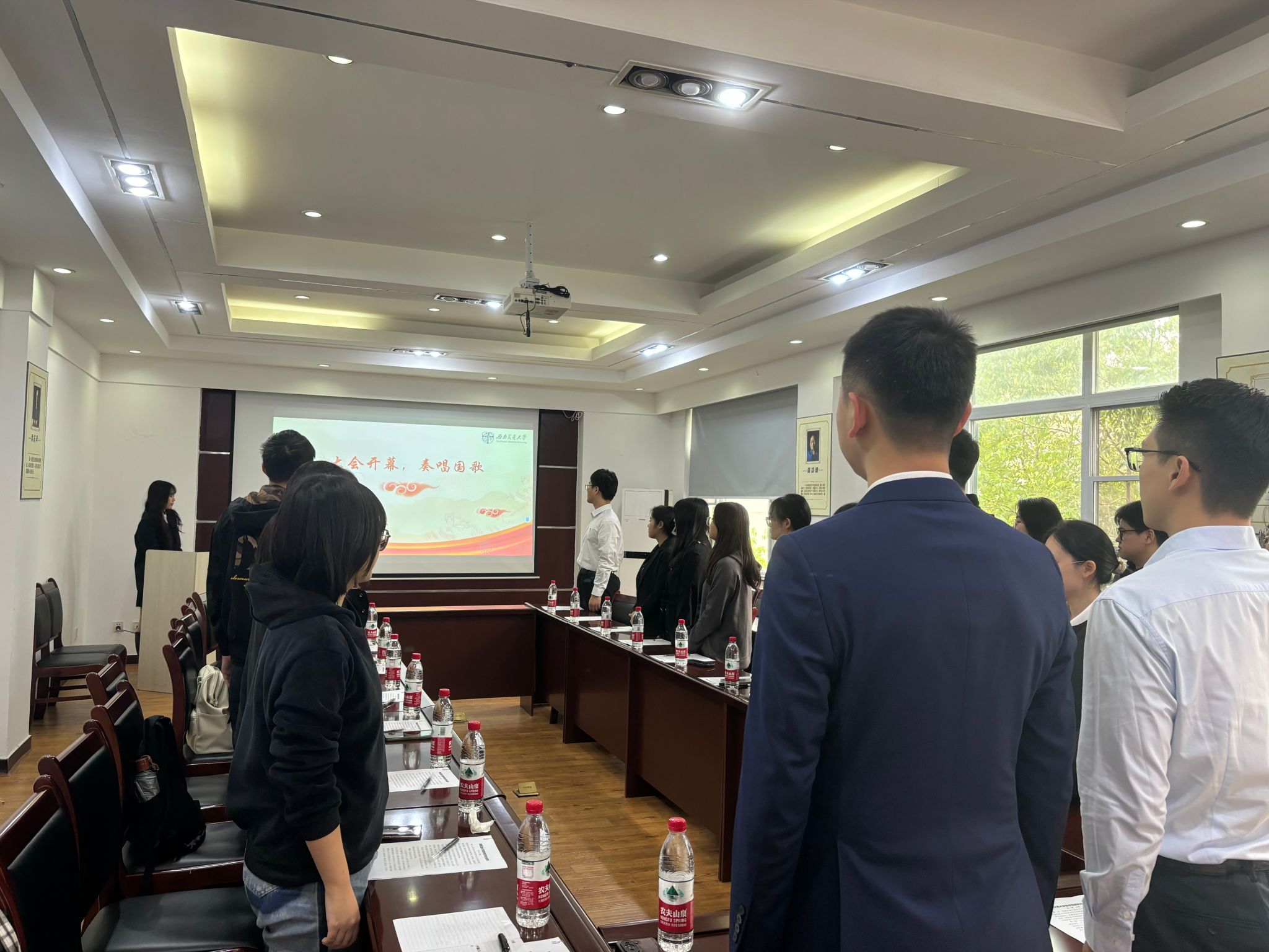 第四次研究生代表大会在雄壮的国歌声中拉开帷幕。