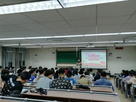 党委书记李锦红老师以“在百年党史中感受中国共产党的伟大”为主题向大家讲授了本次培训班的第一堂党课。李书记运用“雨课堂”平台,采用互动研讨的方式与全体学员共同讨论了三个问题:一是中国共产党凭什么能称得上“伟大”?二是中国共产党为什么能如此“伟大”?三是为什么要加入中国共产党?在互动研讨中,李书记讲述了自己对这三个问题的理解,他指出,中国共产党有伟大的成就,有顽强拼搏,不惧困难,不懈奋斗所铸就的精神谱系,有全面建成社会主义现代化强国、实现中华民族伟大复兴的伟大梦想,因此称得上伟大;中国共产党有科学的理论指导,有坚定的理想信念,有有力的自身建设,因此能够如此伟大。最后,李书记引用习近平总书记的人生经历及二十大报告中对青年的希望,来回答了为什么要加入中国共产党这一问题。李书记鼓励全体入党积极分子,要让自己的青春在赓续党的事业中更加闪光,让自己的人生在赓续党的事业中更加充实、更有意义。