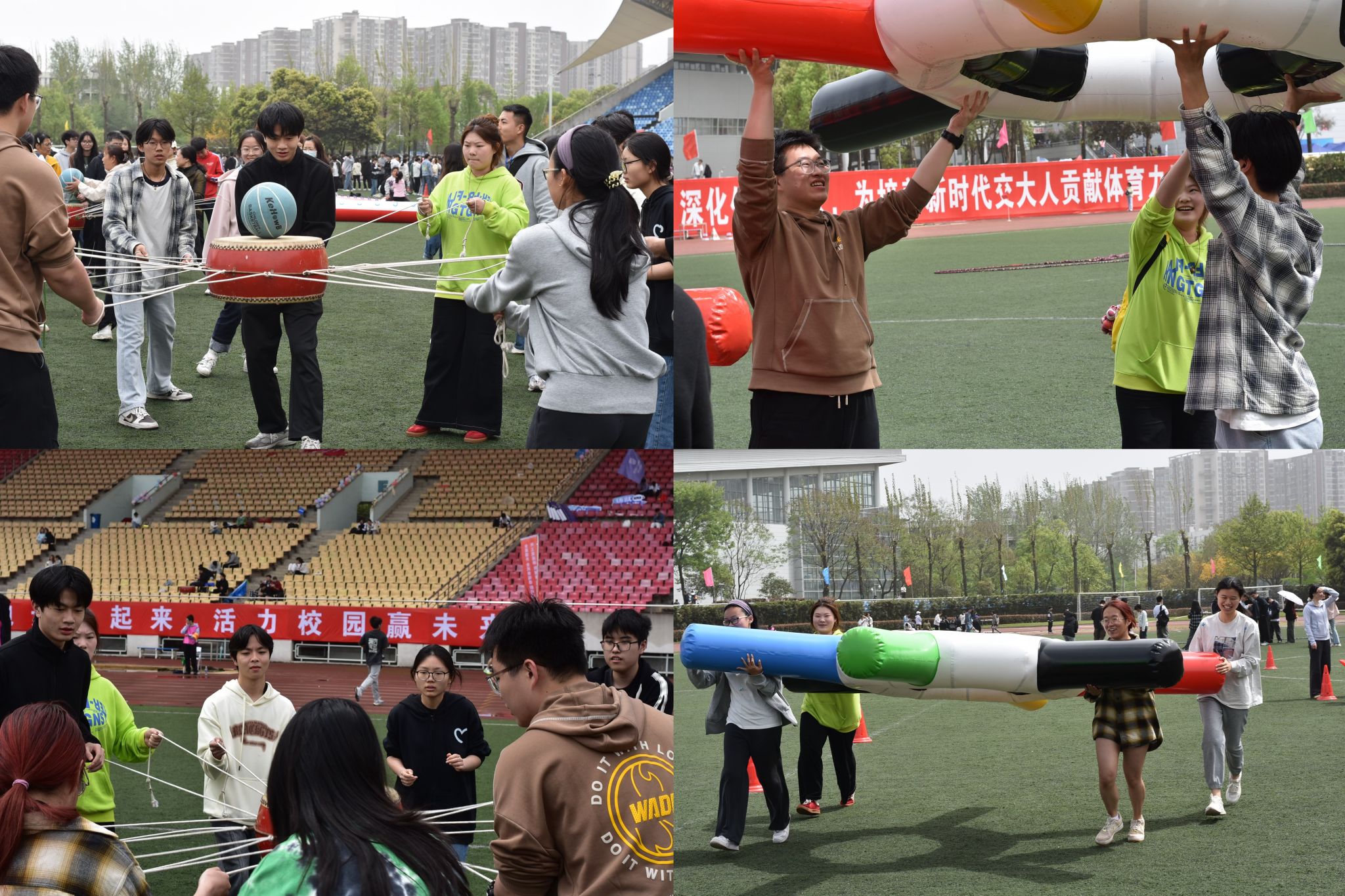 比赛点燃了同学们的熊熊斗志。不论是田径类项目,还是创新的团队类项目,大家踊跃报名。在为期两天的角逐中,运动员们全力以赴,不断突破自我。裁判和志愿者也一丝不苟地执行自己的工作。观众的加油鼓气,点燃了全场的热情,激励交医的运动健儿们拿下出色成绩。