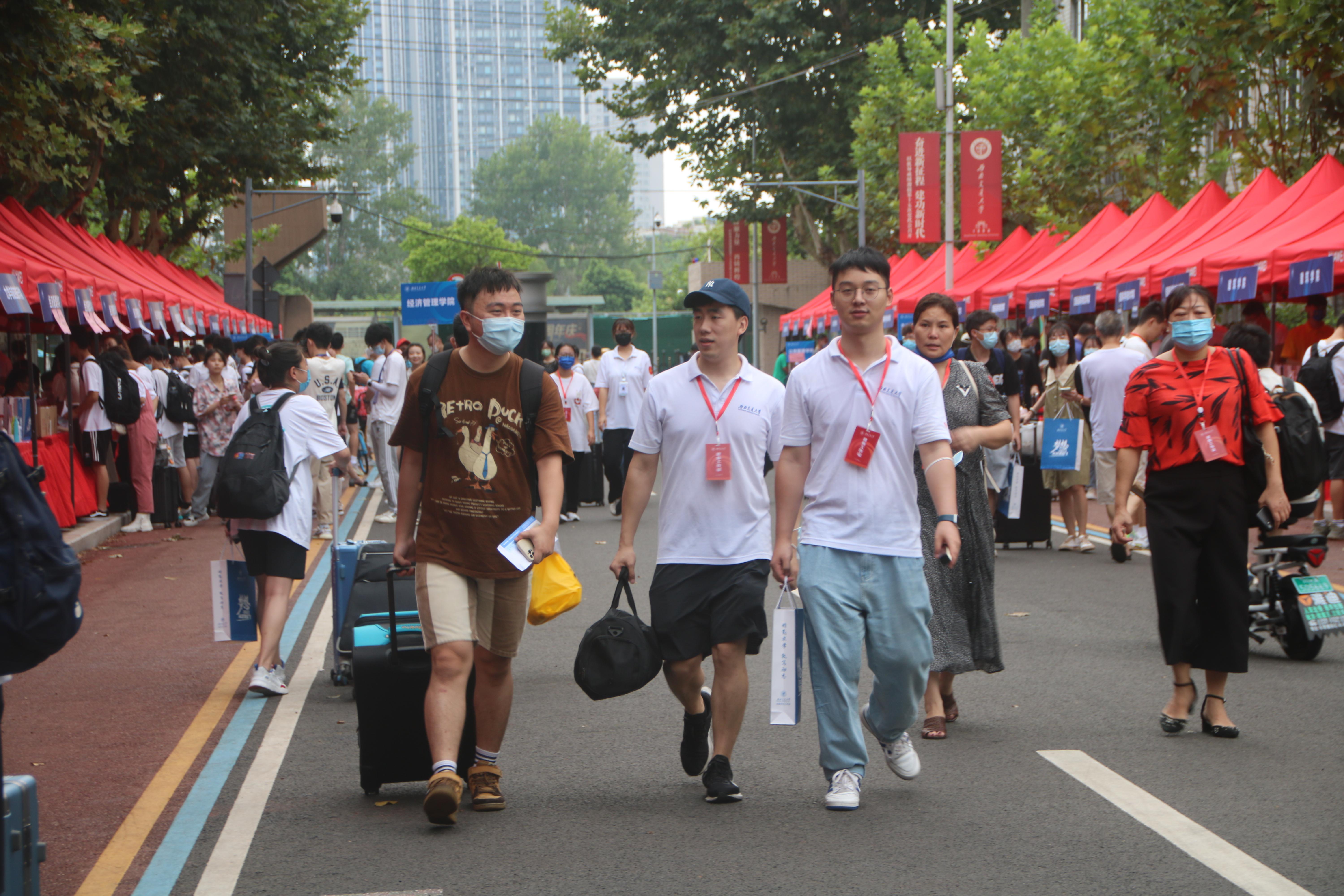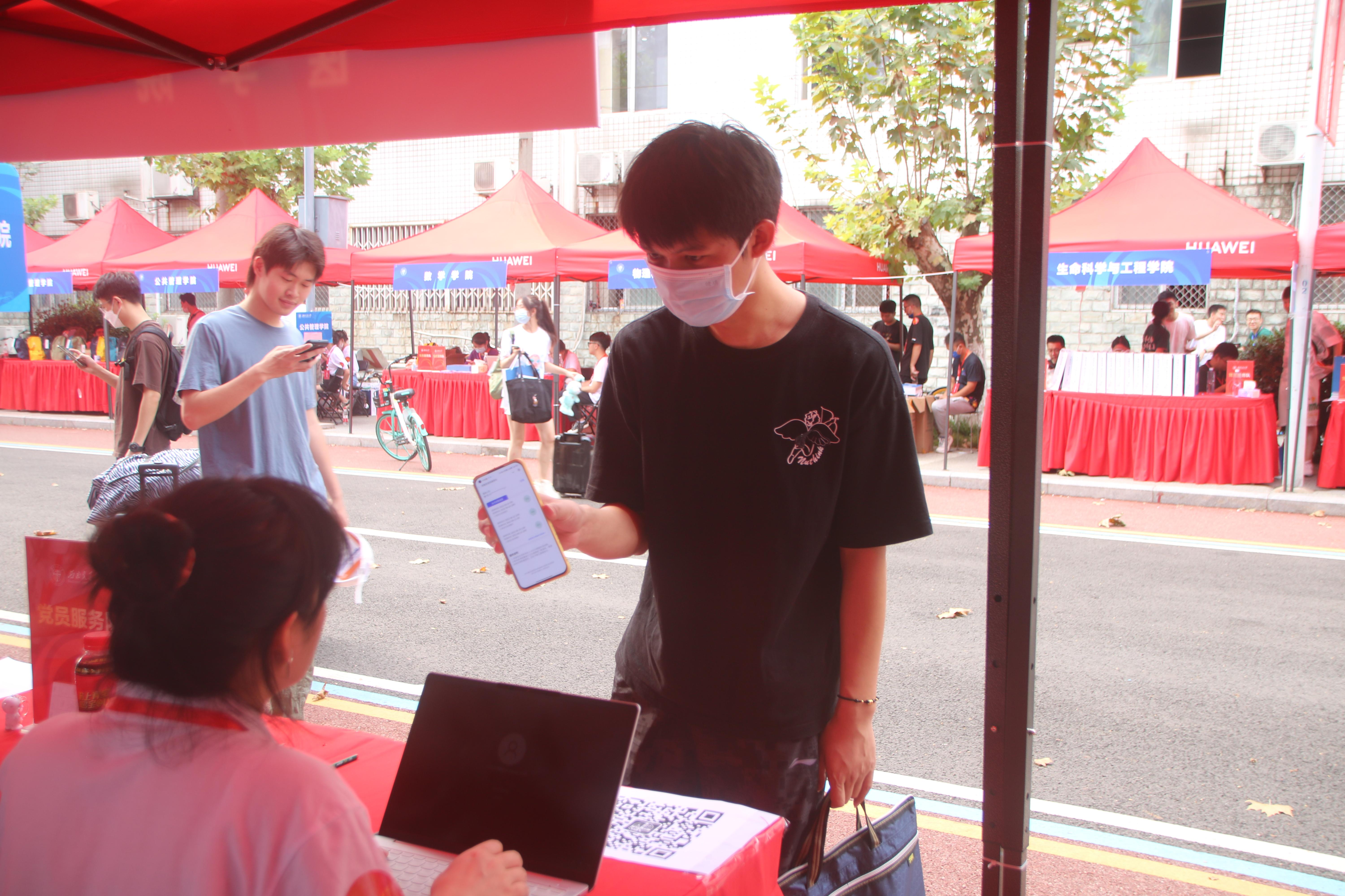截至26日20点,学生已完成到校报到手续,一位新生因为疫情原因延迟报到,迎新工作人员协助其线上完成报到手续。在迎新工作中,志愿者们热情、亲切、周到、有序,赢得了新生们的一致好评。