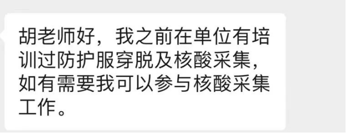 学校组织如此大规模的核酸检测,肯定需要大量志愿者。学院立刻开始征集储备志愿者,以支持学校疫情防控工作。在学院通知发出不到1小时,学院在校80%以上学生积极报名,希望能够承担志愿者工作。在学校,医学生这方面的知识最丰富、最专业,医学生理应冲到最前面,因为护佑人类健康的战场,就是医学生的主战场。
