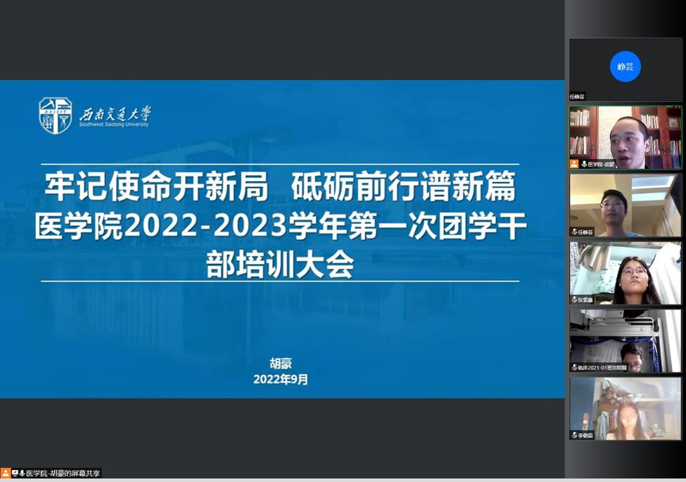 于线上召开了2022-2023学年第一次团学干部培训大会。会议由学生工作组副组长胡豪老师主持,辅导员黄雪梅老师及萝莉岛