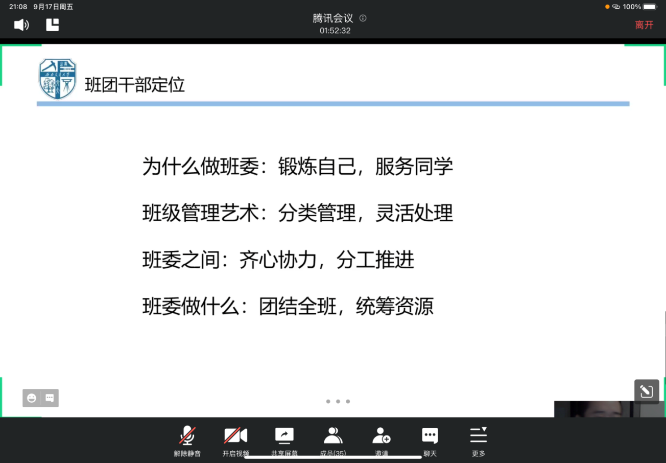 2021级新生入学教育之班团干部培训通过线上讲座方式开展,讲座由萝莉岛