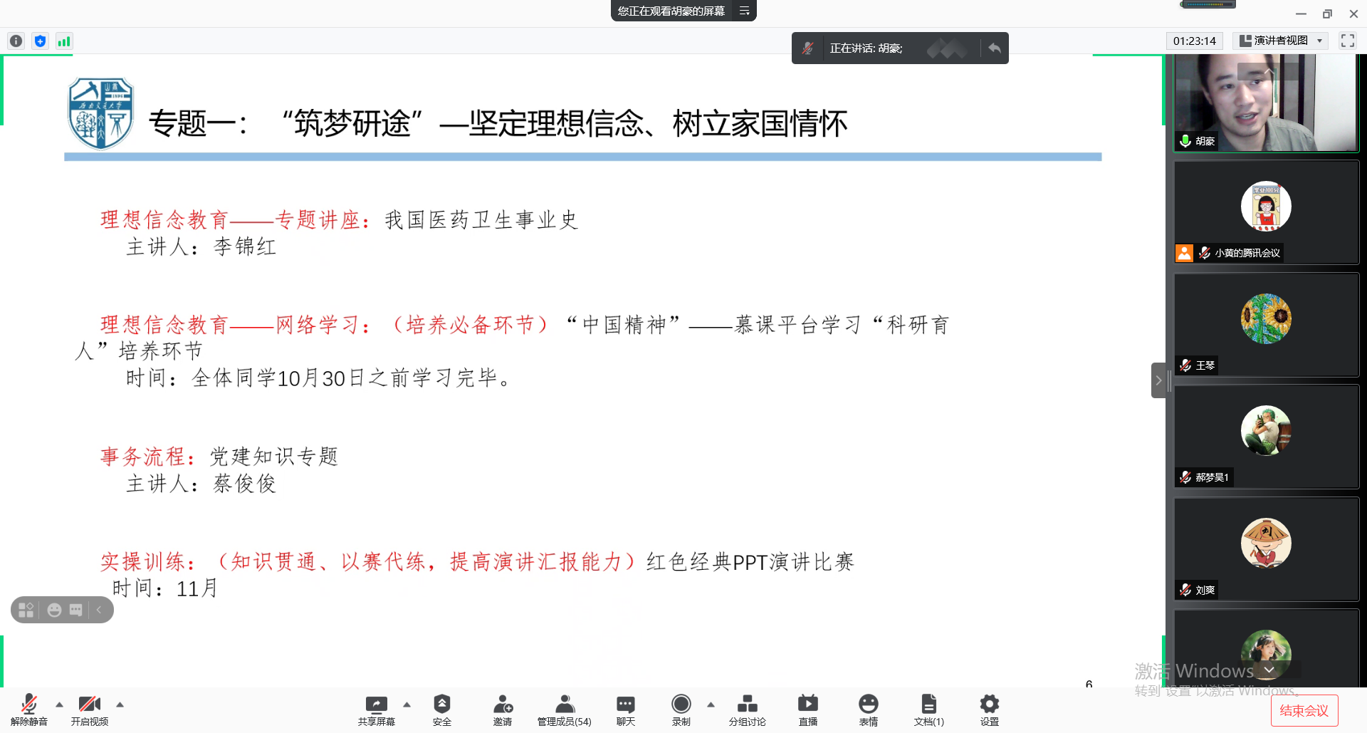 最后,胡豪就学院研究生新生入学教育系列讲座的内容进行了详细的安排。