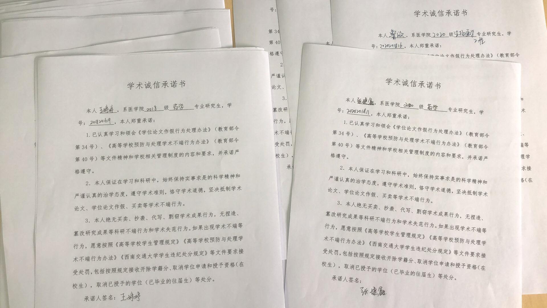 随后,在场的学生干部们每人签下一份学术诚信承诺书,为自己的行为作出保证。