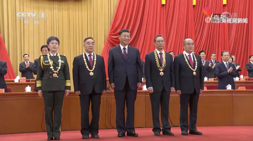 9月8日上午,全国抗击新冠肺炎疫情表彰大会在北京人民大会堂隆重举行。中共中央总书记、国家主席、中央军委主席习近平向获授“共和国勋章”国家荣誉称号的钟南山,获授“人民英雄”国家荣誉称号的张伯礼、张定宇、陈薇颁授勋章奖章,并发表重要讲话。