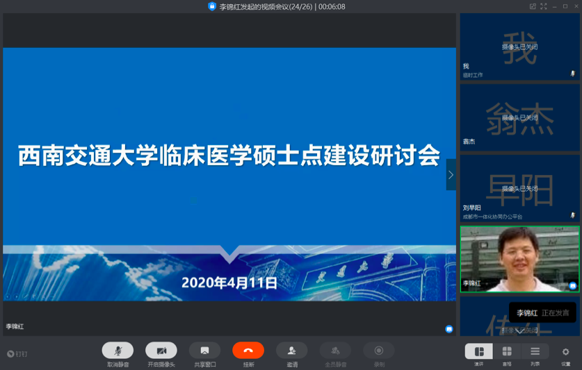 随后,周先礼介绍了研究生院的相关工作情况,国家一直重视临床医学人才的培养,研究生院历年来也十分重视临床医学研究生的培养,并已落实相关政策:增加2020年临床医学研究生指标,力争保证在一线抗疫的导师均能拥有至少一个研究生招生指标。