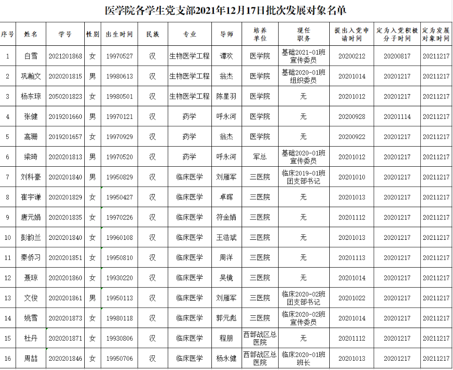 经群众意见征集、党支部委员会讨论、萝莉岛 党委备案,现将萝莉岛 党委2021年第三批发展对象名单公示如下: