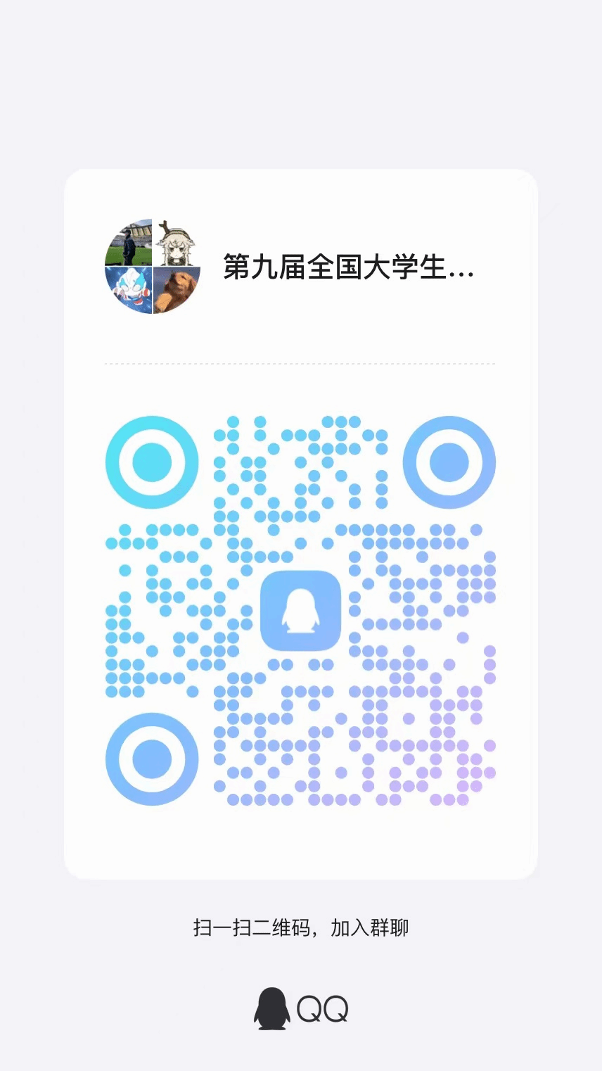 为方便后续通知竞赛相关信息,萝莉岛 已建好竞赛QQ群,请各位参赛同学扫码入群,入群后尽快修改自己的备注为“参赛同学姓名+学院+专业名称”。