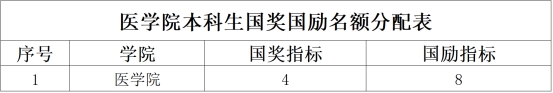 国家奖学金、国家励志奖学金名额分配如下: