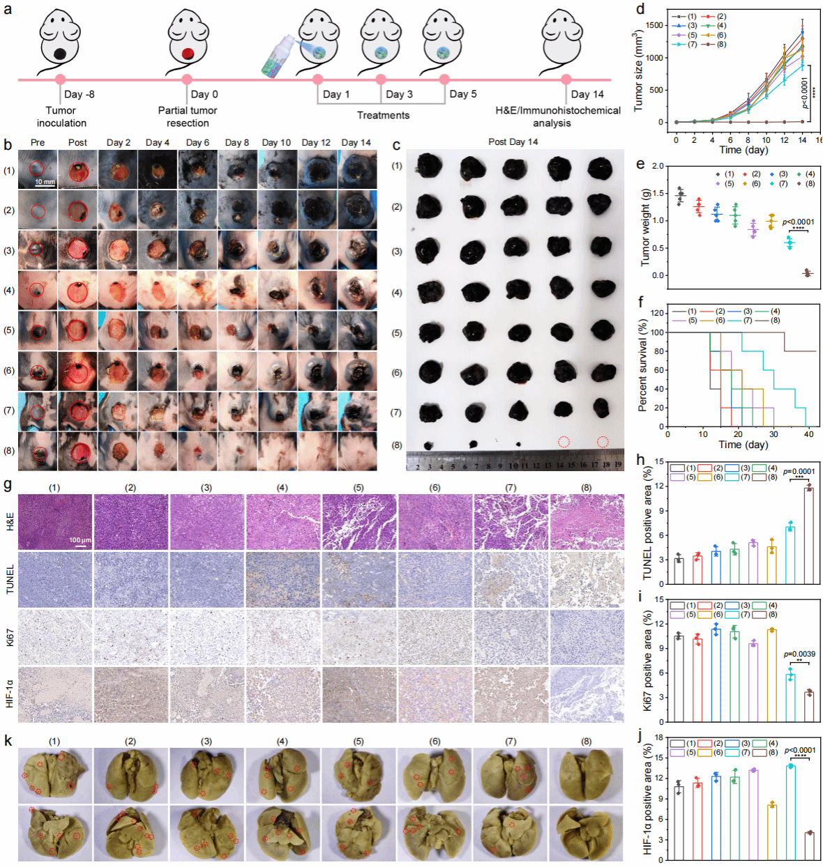 图2自产氧活性水凝胶对小鼠黑色素瘤术后治疗效果