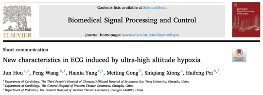 博士生导师裴海峰和硕士生导师侯君在《Biomedical Signal Processing and Control》期刊发表题为“New characteristics in ECG induced by ultra-high altitude hypoxia”的文章(IF:5.076)。该篇论文的第一作者为萝莉岛