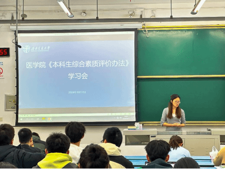 本科生综合素质评价》进行了修订,为了更好地让学生了解和掌握新的评价标准,各年级的辅导员也组织了专题学习活动。辅导员靳涵、王川玲为各自年级详细解读了新修订的评价标准,让学生们明确了自己的发展方向和努力目标。同时,班会还鼓励学生们积极参与各项素质拓展活动,不断提升自己的综合素质和能力水平。此次活动让同学们意识到自我的全面提升对于未来学习和生活的重要性,激励同学们不断提升个人能力与品质,积极投身校园生活中,为自己的未来铺平道路。