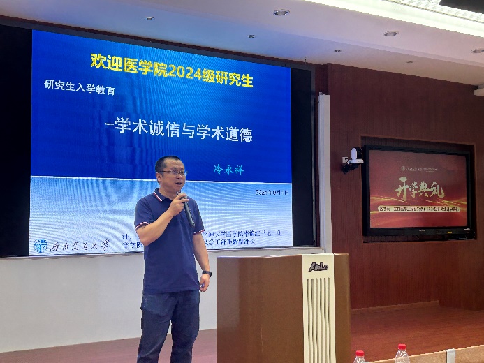 开学伊始,学院副院长冷永祥教授以“学术诚信和学术道德”为主题,为2024级新生从日常多个角度讲述何为学术道德以及如何坚守学术诚信,让大家深刻理解学术诚信的重要性,树立正确的学术道德观念,共同营造一个健康、公正、诚信的学术环境。诚信是学术研究的底线,道德是学术活动的指南,引导同学们共同书写学术研究的新篇章。