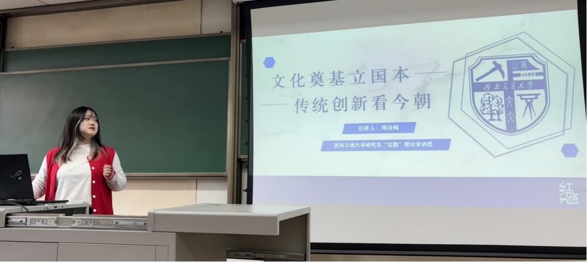 研究生“红路”理论学讲团为24级全体研究生举办文化创新专题宣讲活动,与在场的研究生们共同探讨传统文化与创新精神的融合之道,为校园文化建设贡献青春力量。