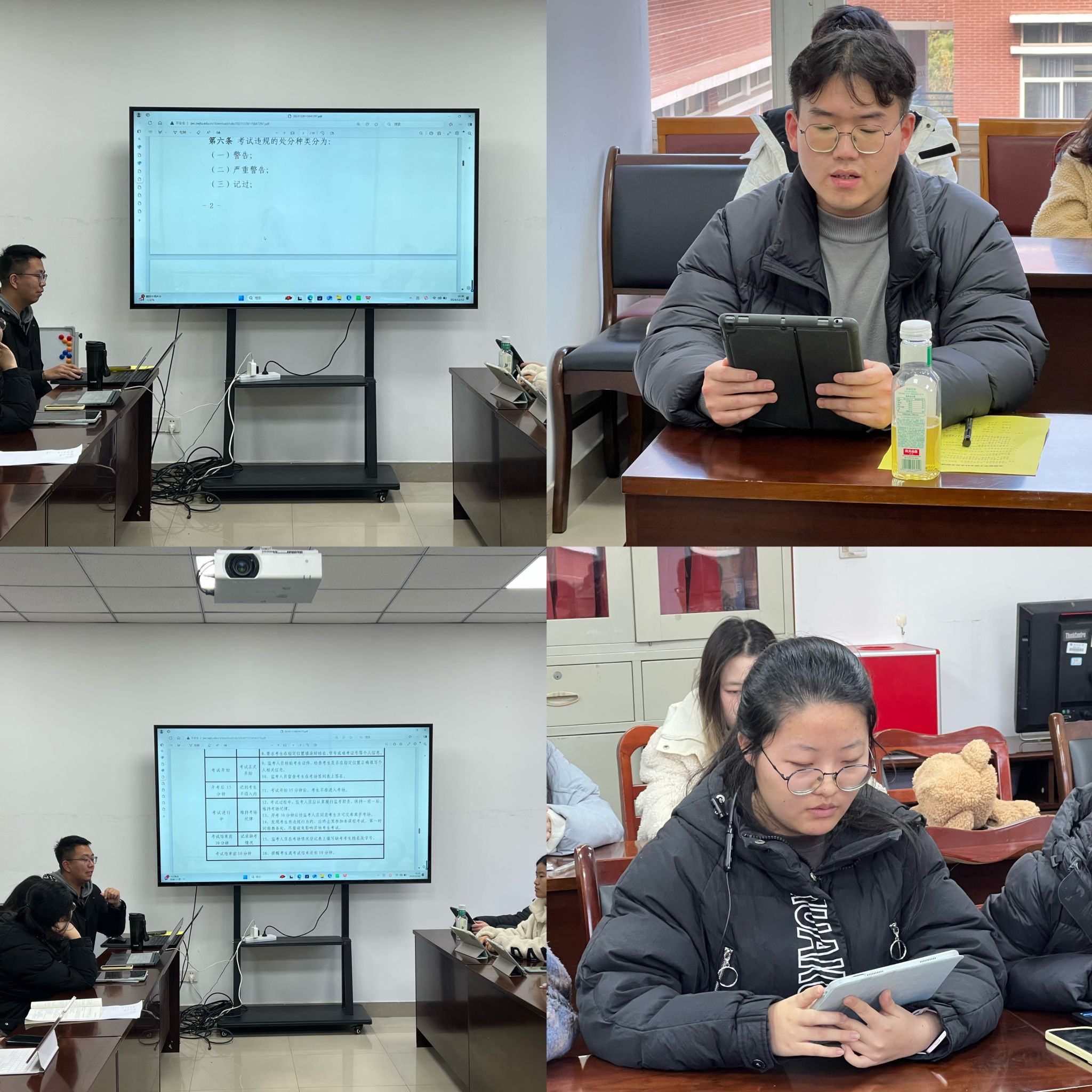 学生纪律处分规定》等重要文件,并结合近年来的违规案例进行深入剖析。会议最后,党支部党员之间进行了积极的交流互动,大家纷纷表示将认真备考,并会将相关注意事项传达给班级同学,共同维护良好的考试秩序和学习环境。