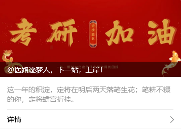 针对即将参加考研的同学,党支部特别制作了《@医路逐梦人,下一站,上岸!》专题推文。推文通过分享考研经验、提供备考建议、鼓励大家坚定信心等方式,为考研同学提供了有力的支持和帮助。本科党支部指导老师靳涵、本科党支部书记连岩鹏、党员代表马俊杰在12月19日深入考研学生宿舍,慰问考研学生,为他们加油鼓劲,提醒大家提前打印准考证、带好身份证件、做好保暖工作等。这一举措不仅增强了考研同学的信心和动力,也让他们感受到了来自党组织的关怀和温暖。