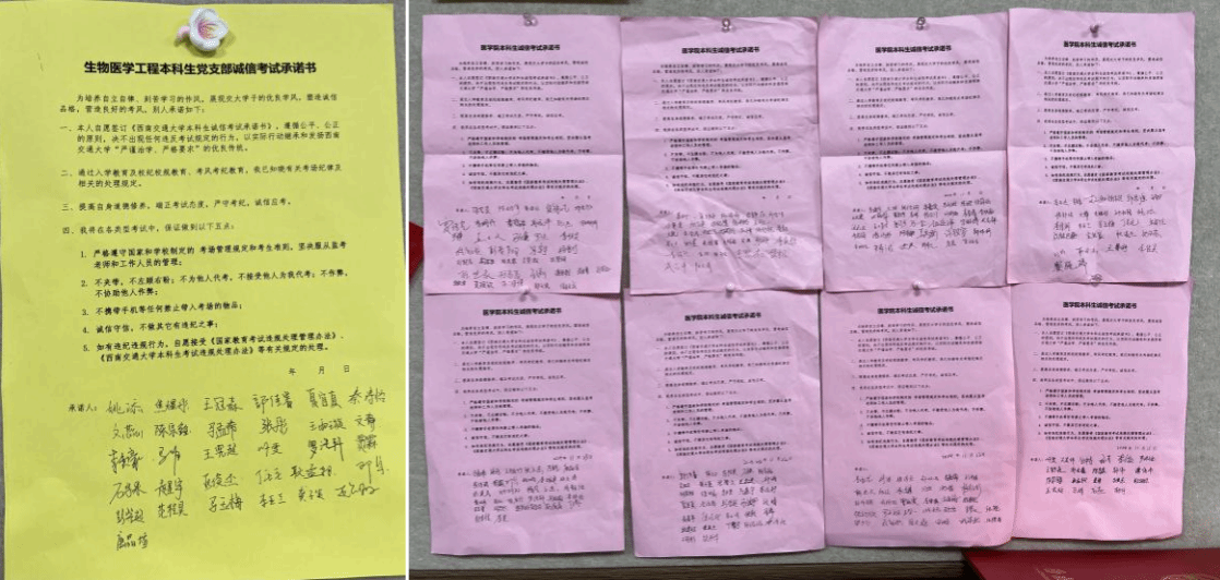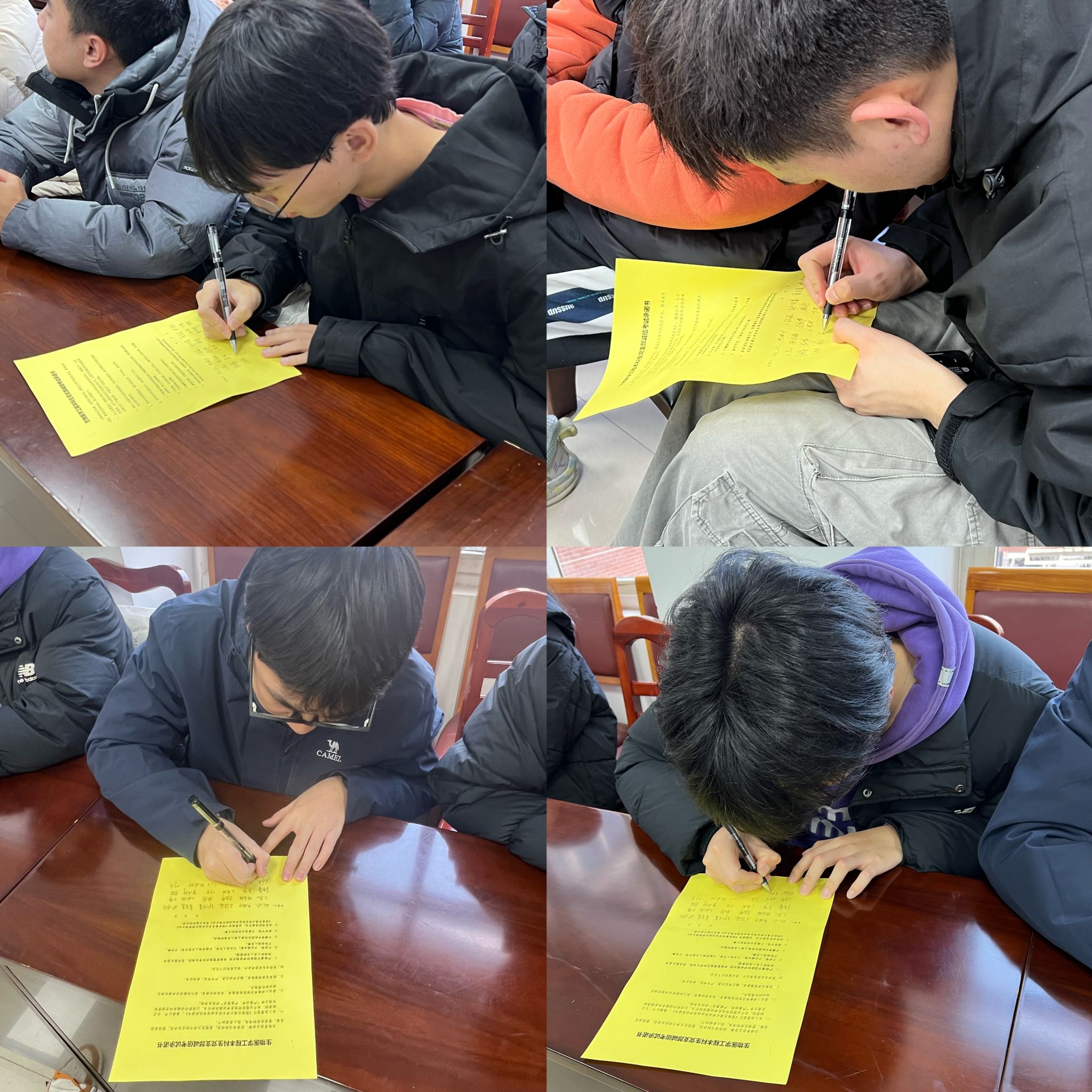 为了进一步强化考试纪律,党支部组织全体党员及所有班级签订了《考试诚信承诺书》。承诺书要求大家严格遵守考试纪律,杜绝任何形式的作弊行为,共同维护考试的公平公正。这一举措不仅增强了大家的诚信意识,也为营造风清气正的考试环境奠定了坚实基础。
