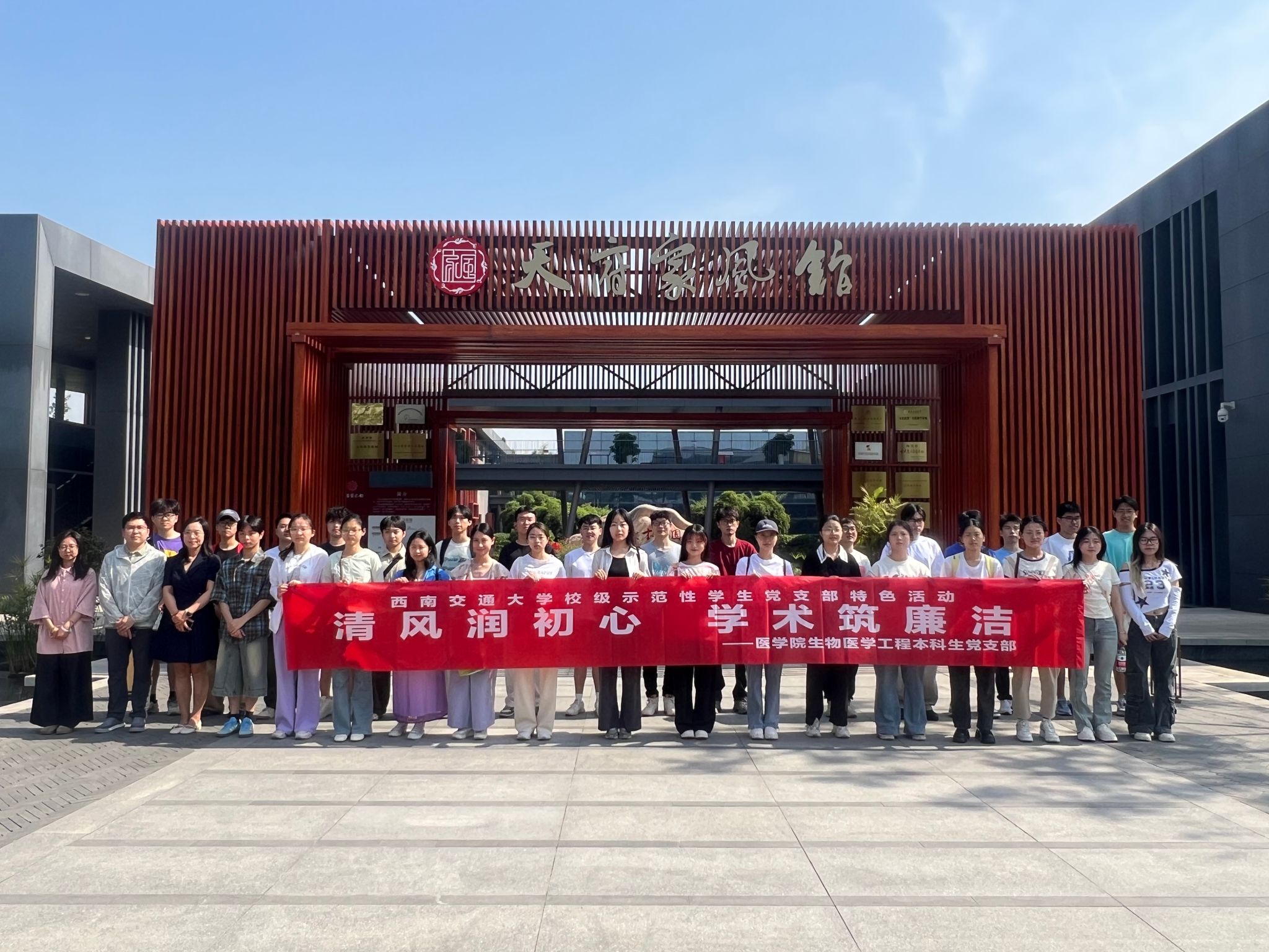 生物医学工程本科生党支部组织全体学生党员赴四川省廉洁文化教育基地“天府家风馆”,开展“清风润初心,学术筑廉洁”主题党日活动,活动邀请学院党委副书记于楠、生物医学工程系教工党支部书记向韬一同参加。此次活动以家风文化为载体,将廉洁教育与学术诚信教育深度融合,引导学生党员筑牢思想防线,践行“医工结合,健康中国”使命。