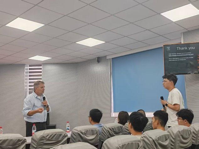 讲座结束后,师生们与Henrik Rudolph教授就“AI工具在论文写作中的适用边界”进行了热烈的互动交流。大家纷纷提出问题,更深入地了解Henrik教授在讲座中分享的研究成果。现场气氛活跃,师生们表示受益匪浅。
