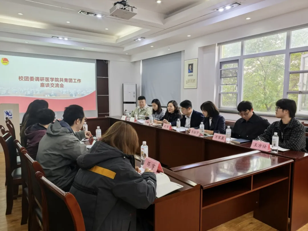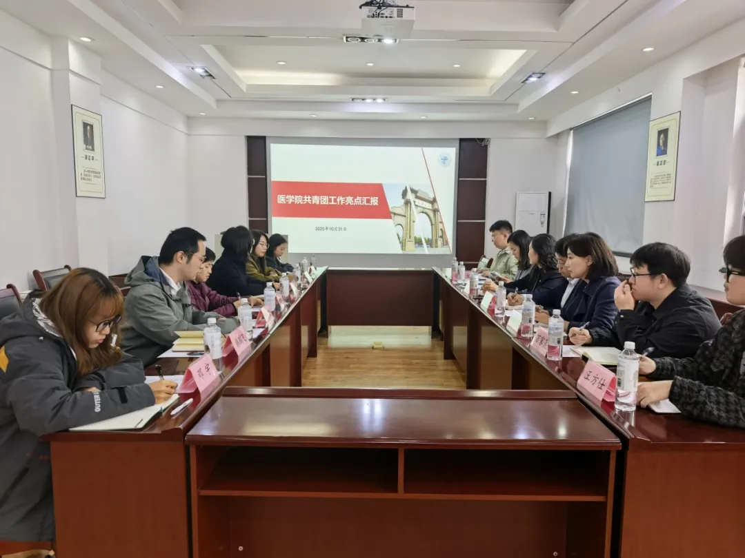 团委书记胡豪系统汇报学院特色工作。他从“三大讲座”铸魂、“三维融合”强基、“微实育人”润心三个维度,展示了学院团委深耕思想引领、组织建设与劳动体育教育的特色做法:依托“医路前行、筑梦医路、教授面对面”把高水平师资转化为思政动能;支部建在科研团队上,形成党团班同频共振的育人格局;以全院体育节、“生医大扫除”等小型化、日常化活动,让体育和劳动教育落地见效。同时结合实际工作,提出了当前学院团委工作面临的困难和未来发展的新愿景。
