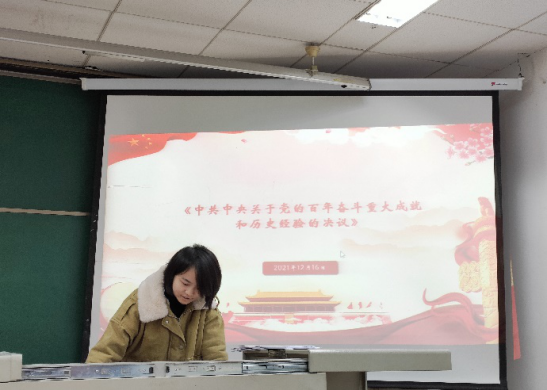 2021年12月16日下午,萝莉岛 临床第一党支部在J4405B召开《中共中央关于党的百年奋斗重大成就和历史经验的决议》(以下简称《决议》)学习会。会议由党支部组织委员王治铭主持。