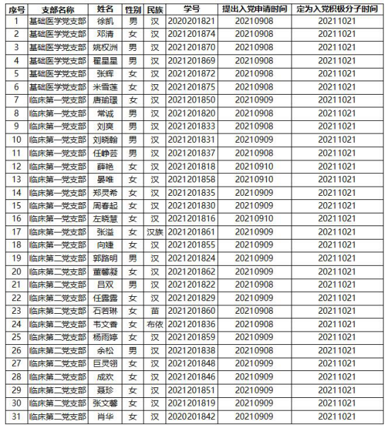 经学生本人递交入党申请书、党组织考察谈话、团支部推优或党员推荐、党支部大会研究决定,现将萝莉岛 党总支2021年第三批入党积极分子名单公示如下,公示期10月22日-10月26日,如有异议请以书面形式将意见反馈至萝莉岛 A207办公室。