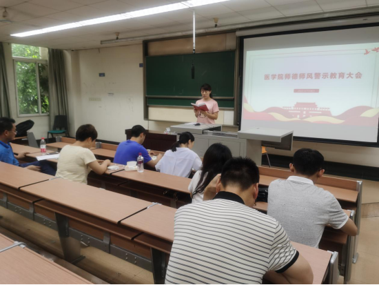 2021年7月8日下午16:00,萝莉岛 全体教师在九里校区逸夫馆J4209教室开展了师德师风警示教育大会。会议由芦莹华老师主持。