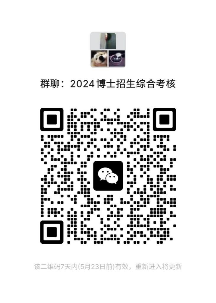 为后续方便通知复试相关信息,学院已建好复试微信群,请各位复试考生扫码入群,入群后尽快修改自己的备注为“考生姓名+报考博导姓名+专业名称”。