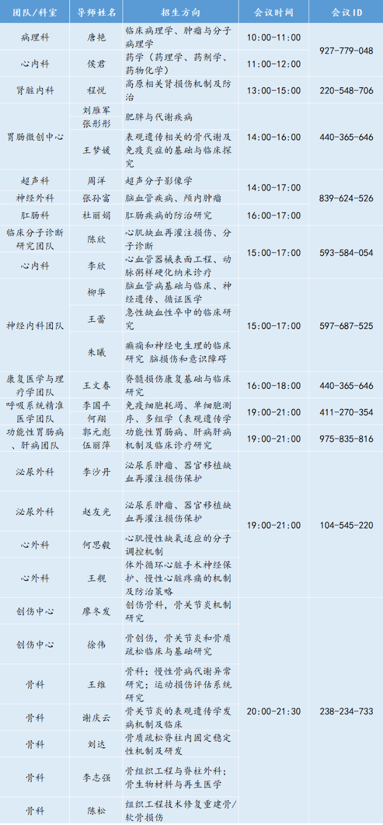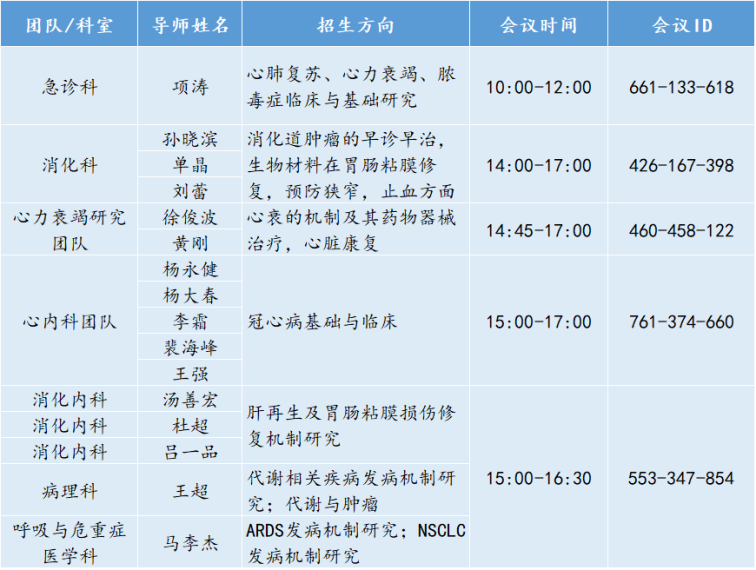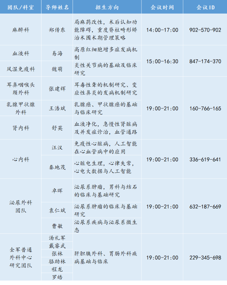 学院各导师及团队线上咨询会时间安排如下: