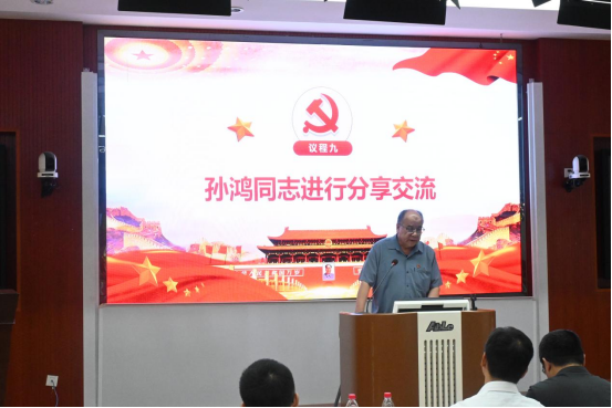 宣誓后,孙鸿同志结合个人经历和入党历程,为全体党员们讲了一场生动难忘的党课。孙鸿同志用他15年曲折而坚定的入党历程,用他一心一意为党和国家事业贡献力量的实际行动,诠释了一个老党员“信仰如山,初心如磐,使命在肩,一生践行”的党性修养 ,他告诫全体党员:“荣誉是过去式,入党是永远的现在进行时。”