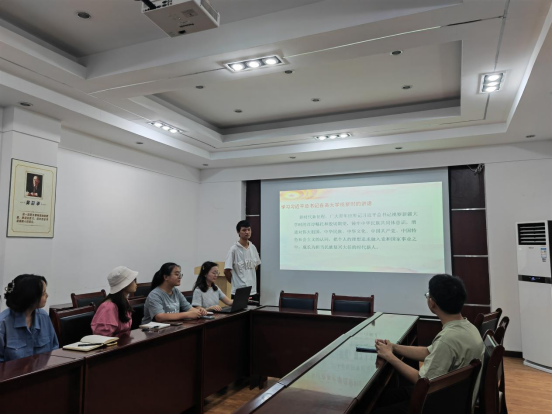 主题教育“金句三分钟”特色活动相结合,采取“金句分享会”的模式开展。各支部党员分别选取了习近平总书记寄语青年的重要论述金句进行了分享,并讲述了金句背后习近平总书记重视高校工作、关心青年成长的故事和金句的深刻内涵。
