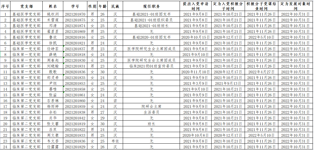 经团支部推优、群众及党员意见征集、党支部委员会讨论、萝莉岛 党委备案,现将萝莉岛 党委2022年第二批发展对象名单公示如下: