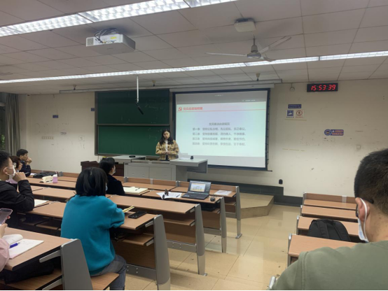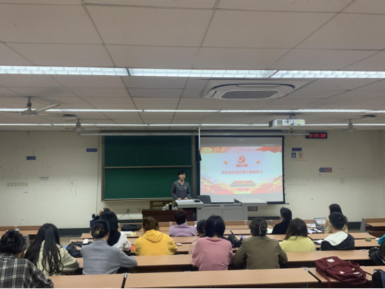 专职组织员蔡俊俊同志从“制度建设”“廉洁教育”“党员教育监督管理”“党员发展质量”四个方面介绍了党支部在全面从严治党方面应该如何做,并强调党员同志们应常态化学习《中国共产党遵守廉洁自律准则》,认真履行党章中规定的义务和权利,带头遵守学校、学院,党内、党外的各项管理规定。