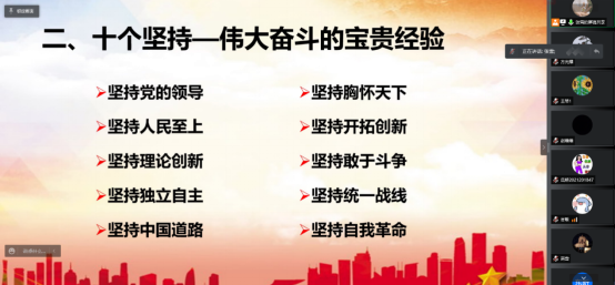 11月19日晚,临床第二党支部组织全体党员线上观看中国共产党十九届中央委员会第六次全体会议新闻发布会,并由党支部书记张雪同志进行领学,与会同志根据十九届六中全会公报内容及所思所感依次发表感想。