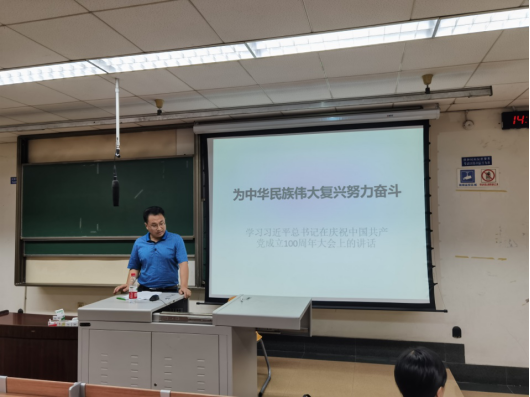 郭泰林老师将习近平总书记的讲话进行模块化解析,暨“致敬过去、畅想未来、提出要求,以中华民族伟大复兴为主线”,条理清晰地分享了讲话内容的九个维度。同时,他用医学知识将中国类比成一个有机体,将中国共产党比作人类这个有机体的大脑。他讲到:“如同生命进化形成人脑一样,中国选择了中国共产党。而如同人类因人脑而处于自然界的主导地位一样,在中国共产党的领导下,我们必定会实现中华民族的伟大复兴!”